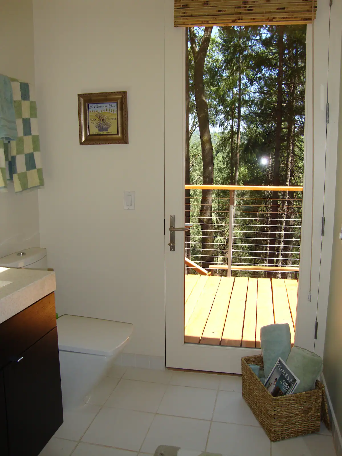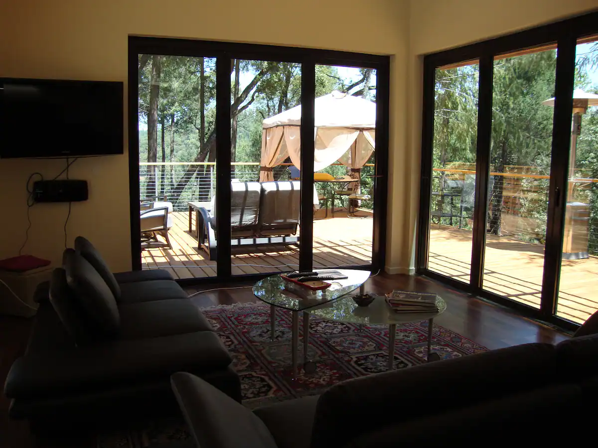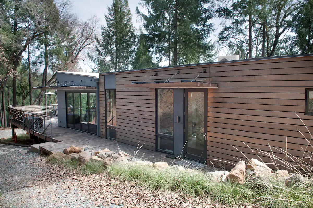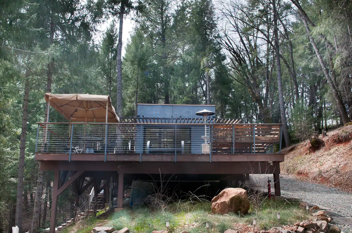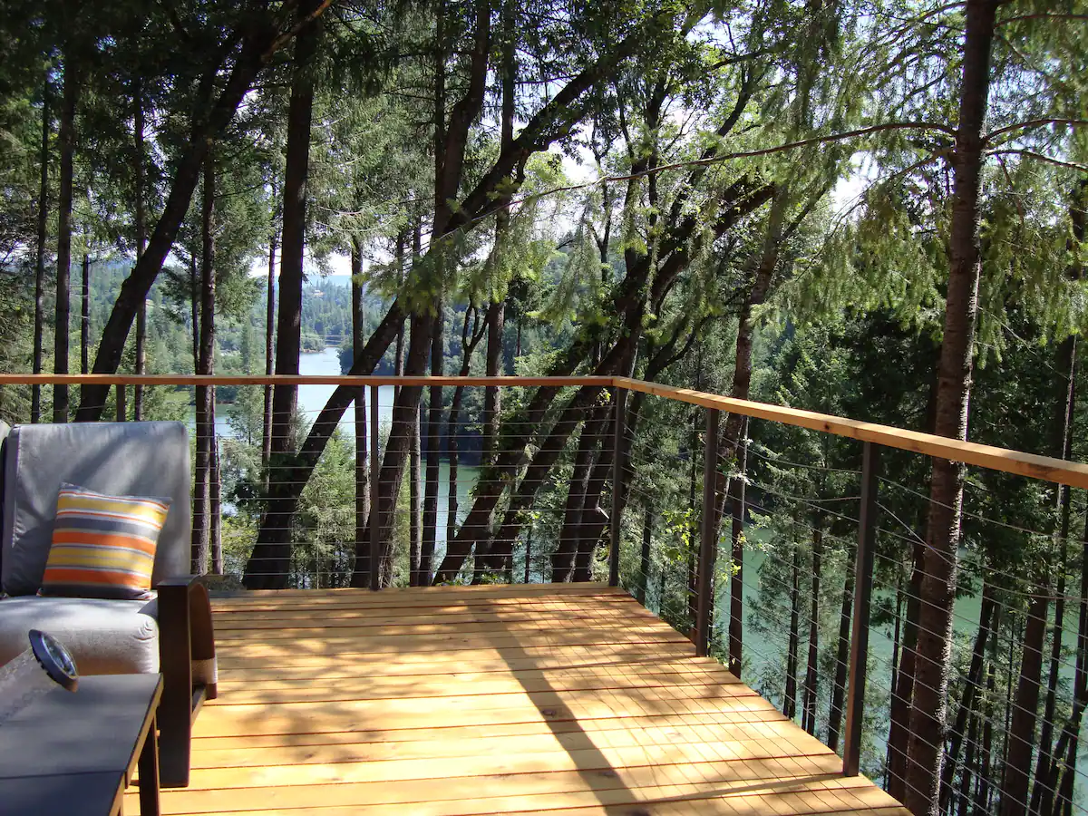 My husband and I stayed here for our honeymoon. It was perfect! The location is great. We were secluded enough but also were close to restaurants, grocery stores, etc. We were about an hours drive from Sacramento Intl Airport and North Lake Tahoe and about an hour and 45 min from South Lake Tahoe. If you’re laying in bed and looking out the window from the bedroom, you have a perfect vantage point to watch the sunrise! We preferred smuggling together on the deck in the fresh air looking at the lake while watching the sunrise though 🙂