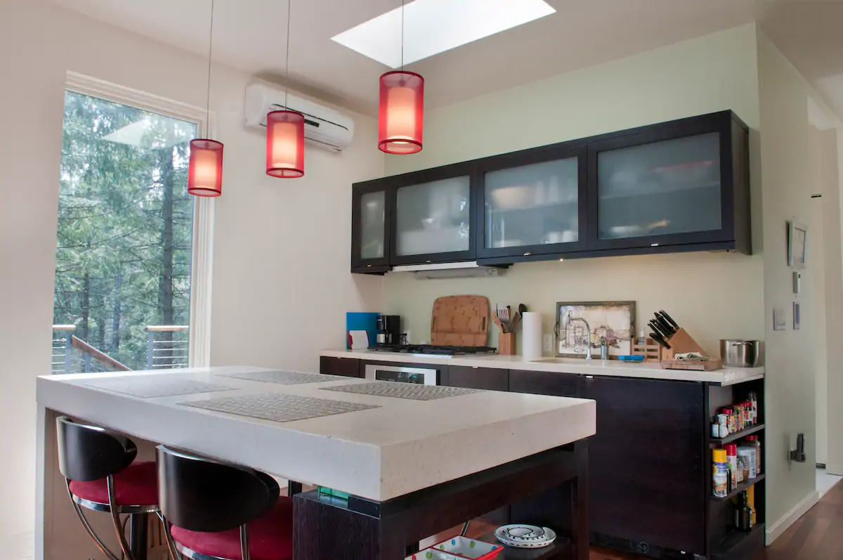 Darling cabin with glass walls . Very comfortable and well stocked. Path to the lake kind of steep but doable. Tod was a great host as well!
